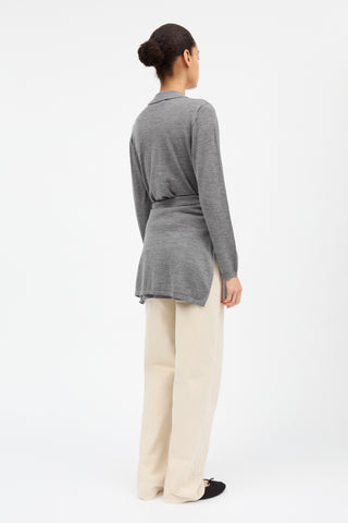 Amethyst Cardigan is a classic polo-shirt style cardigan in light merino wool. It has slightly dropped shoulders and fastens by six buttons down the front.