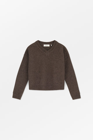 Elly Jumper has dropped shoulders and a slightly oversized silhouette inspired by classic menswear, making it both comfortable and timeless. The elegant V-neckline adds a feminine and modern touch to the classic design.