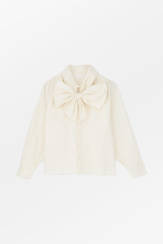 Lady Bow Shirt has a voluminous and feminine collar that ties in a large bow at the front, or which can be styled as a scarf. The shirt is made from 100% organic cotton and fastens with buttons at the front and cuffs.