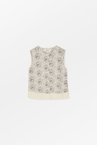 Buttoned top with all over rose embroidery.