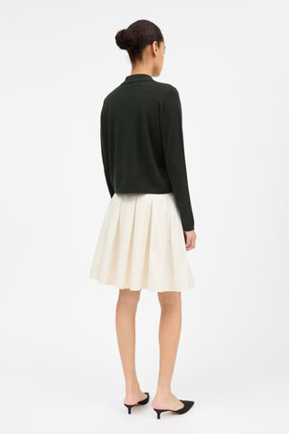 Valse Skirt is a feminine box pleated skirt that falls to just above the knee. Made from 100% organic cotton, it has pockets and closes at the side with a concealed zip.